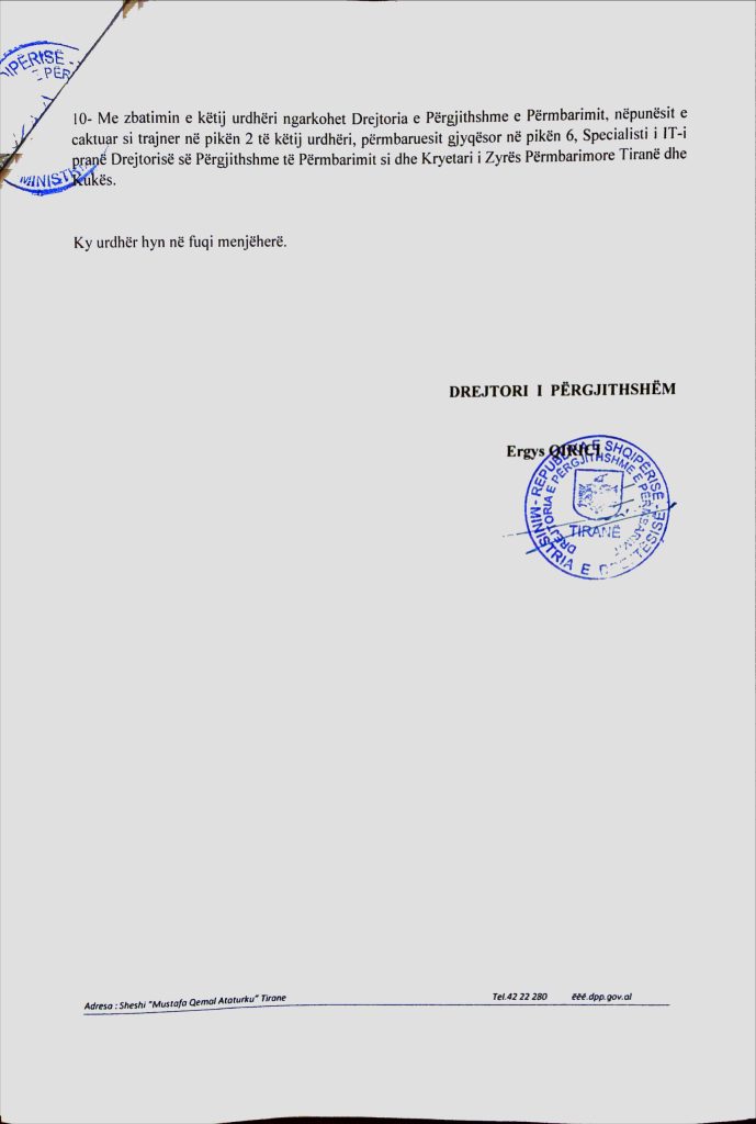 Urdhër nr.162, date 04.12.2025 “Organizimin e programit të trajnimit të detyrueshëm për përmbaruesit gjyqësor në periudhë prove pranë Shërbimit Përmbarimor Gjyqësor Shtetëror.”